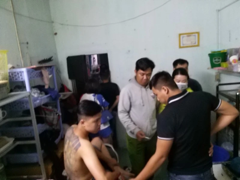 Tại đây lực lượng chức năng phát hiện sáu thanh niên (năm nam, một nữ) có biểu hiện sử dụng ma túy. Kết quả test nhanh cho thấy sáu thanh niên đều dương tính với ma túy đá Methamphetamine.