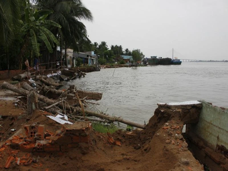 Hiện trường điểm sạt lở bờ sông Hậu thuộc địa bàn Thị xã Bình Minh, tỉnh Vĩnh Long hồi năm 2019. Ảnh: HẢI DƯƠNG