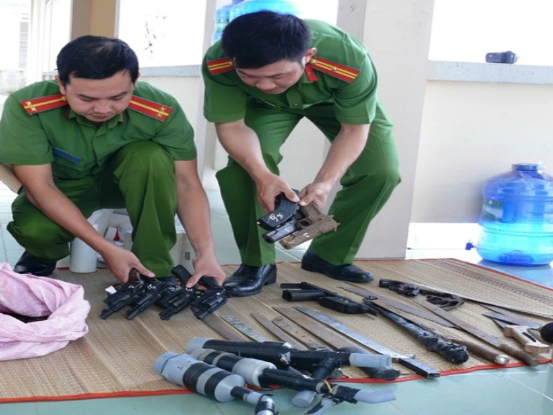 Qua kiểm tra, trong năm 2017, công an đã thu giữ tổng cộng 60 súng quân dụng, 130 công cụ hỗ trợ, 75 súng tự chế, 663 viên đạn, 01 súng săn, 01 đèn pin, 08 súng đồ chơi nguy hiểm, 01 máy dò kim loại đã hỏng do cán bộ về hưu, nhân dân giao nộp. Công an cũng thu giữ 122 mã tấu, dao tự chế các loại từ các vụ đánh nhau, gây rối trật tự công cộng.