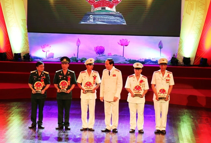Đại tướng Trần Đại Quang trao Quốc huy Nước CHXHCN VN cho năm cá nhân tiêu biểu thuộc lực lượng quân đội và công an