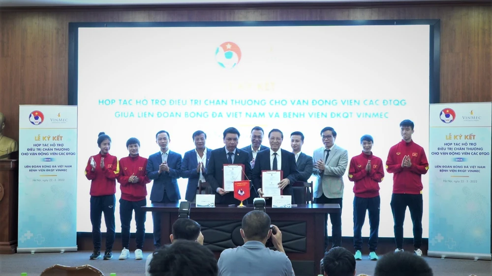 Ngày 22-3, Liên đoàn bóng đá Việt Nam (VFF) và Bệnh viện Đa khoa quốc tế Vinmec (Vinmec) đã ký kết hợp tác hỗ trợ điều trị chấn thương cho vận động viên Đội tuyển bóng đá quốc gia (ĐTQG). Đây là bước tiến trong công tác y tế, đảm bảo phòng ngừa chủ động và hỗ trợ điều trị chấn thương kịp thời cho các tuyển thủ.