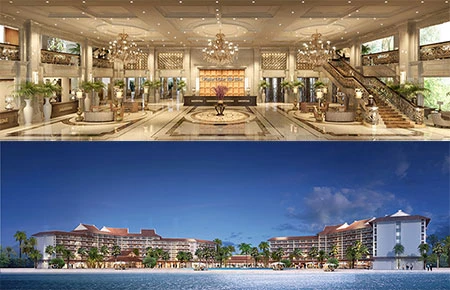 Khu vực tiền sảnh của Vinpearl Phú Quốc. Ảnh dưới: Toàn cảnh Vinpearl Phú Quốc