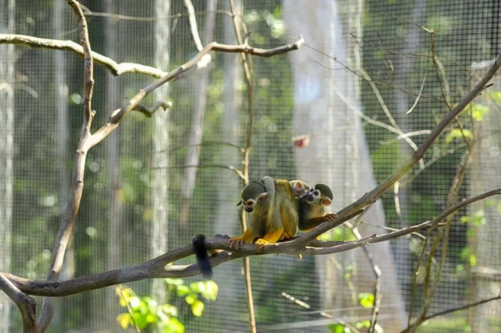 Một gia đình khỉ sóc đang chơi đùa tại khuôn viên xanh mát của Vinpearl Safari Phú Quốc.
