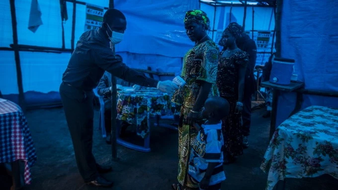 Một bé trai đang được kiểm tra thân nhiệt tại một chốt kiếm tra cách ly Ebola - Ảnh: The Washington Post