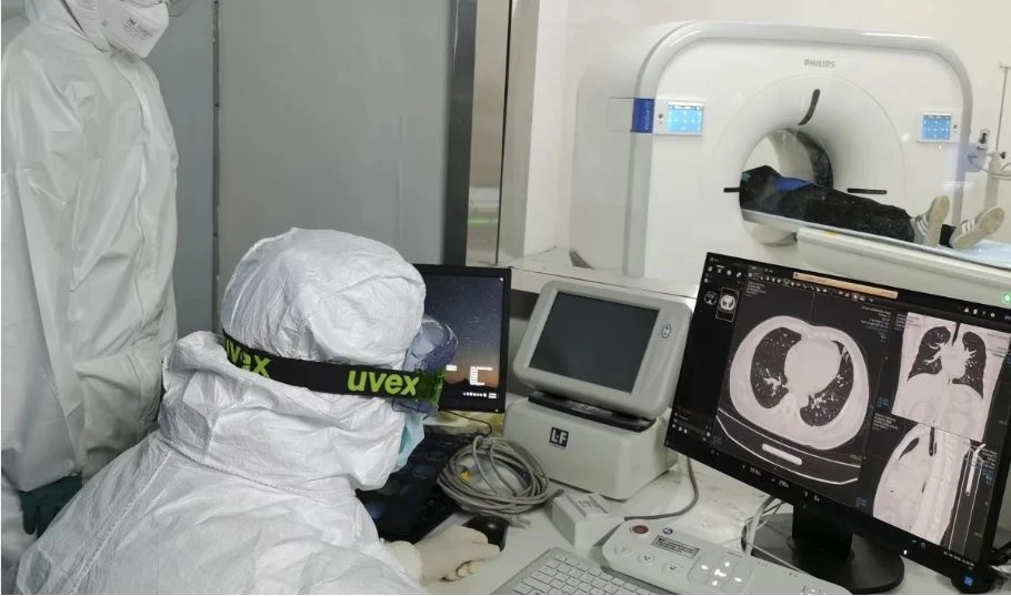 Các bác sĩ quan sát phổi bệnh nhân nhiễm COVID-19 hồi tháng 2-2020 tại TP Vũ Hán, tỉnh Hồ Bắc (Trung Quốc). Ảnh: TÂN HOA XÃ