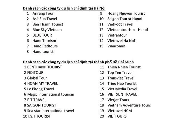 Du khách đi du lịch qua những 35 công ty trong danh sách này sẽ được rút ngắn thời gian xin thị thực.