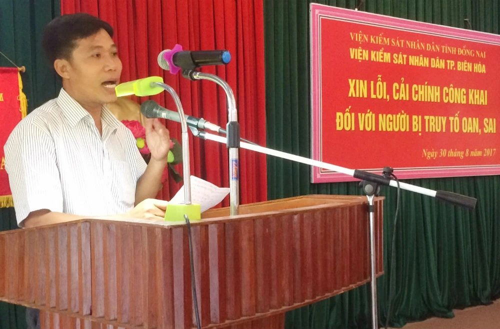Phát biểu xin lỗi công khai, đại diện VKSND TP Biên Hòa, ông Danh Huệ, cho biết việc truy cứu trách nhiệm hình sự của cơ quan tố tụng đã gây ảnh hưởng về vật chất và tinh thần và ảnh hưởng đến uy tín, danh dự của ông Túy.