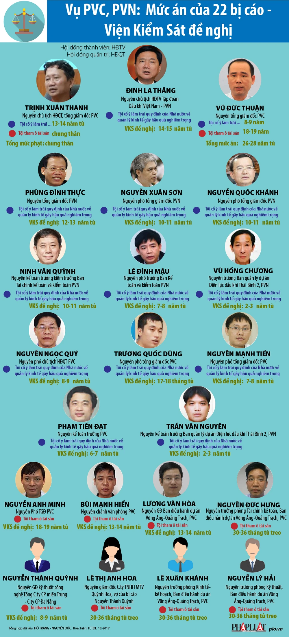 (PLO)- Sau bốn ngày xét xử, đại diện VKSND TP Hà Nội đã lần lượt đề nghị hình phạt với các bị cáo: Ông Đinh La Thăng bị đề nghị phạt 14-15 năm tù, Trịnh Xuân Thanh tù chung thân...