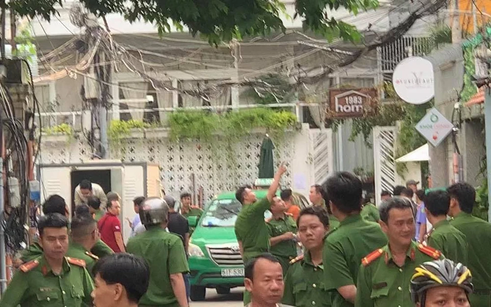 Công an quận 1 tiến hành thực nghiệm hiện trường ngày 4-10. Ảnh: HY