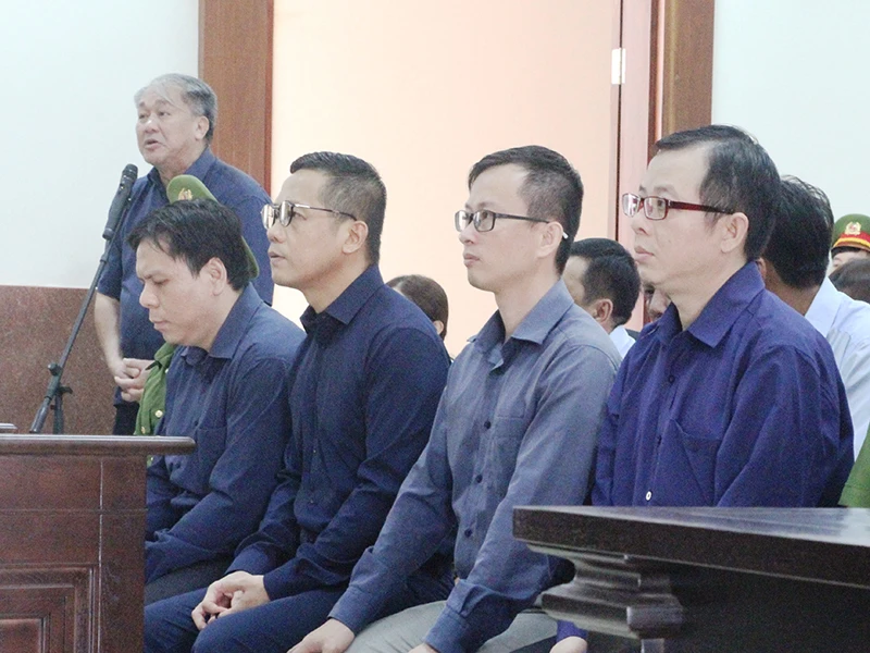 Phạm Công Danh (đứng) và các bị cáo tại tòa. Ảnh: Y.CHÂU