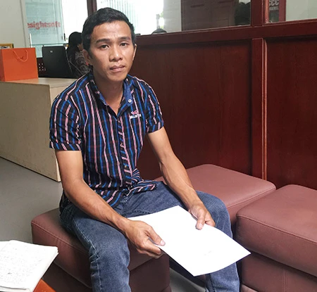 Anh Trần Hoàng Minh khi đến báo Pháp Luật TP.HCM kêu oan. Ảnh: PL