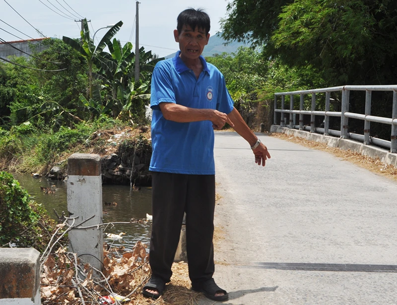 Ông Trần Bê chỉ nơi xảy ra vụ án mà ông bị bắt giam oan cách đây 39 năm. Ảnh: TẤN LỘC