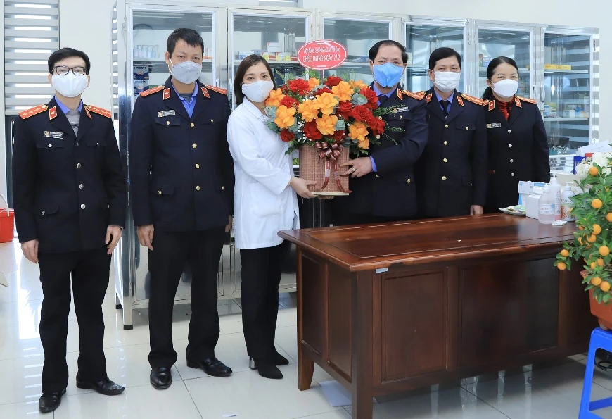 Sáng 25-2, chánh văn phòng VKSND Tối cao Nguyễn Đức Bằng đến thăm, chúc mừng các y bác sỹ đang công tác tại tổ y tế thuộc phòng hành chính, văn phòng VKSND Tối cao.