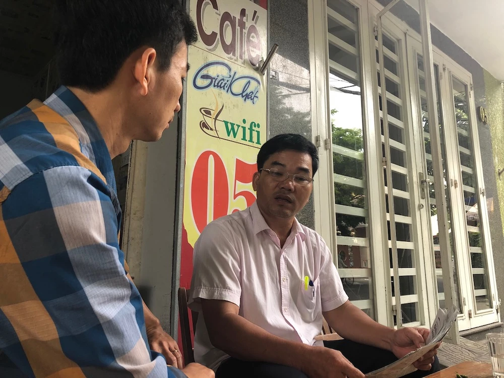 Ông Phan Thanh Trà (áo cộc tay bên phải), một người oan trong vụ án. Ảnh: LÊ PHI