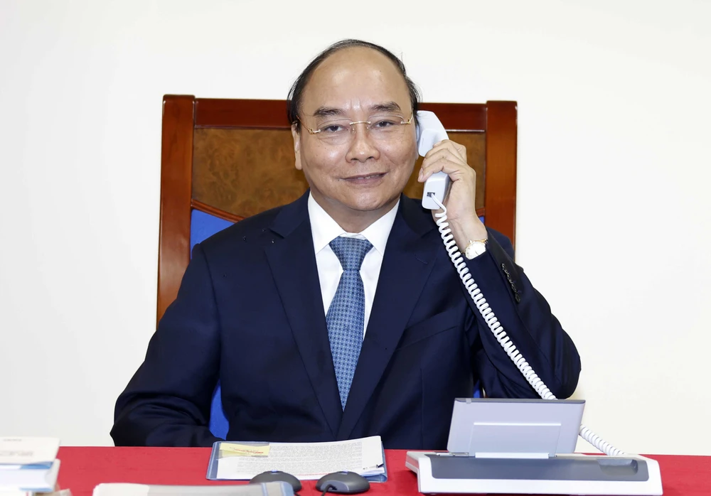 Thủ tướng Nguyễn Xuân Phúc tại cuộc điện đàm. Ảnh VGP