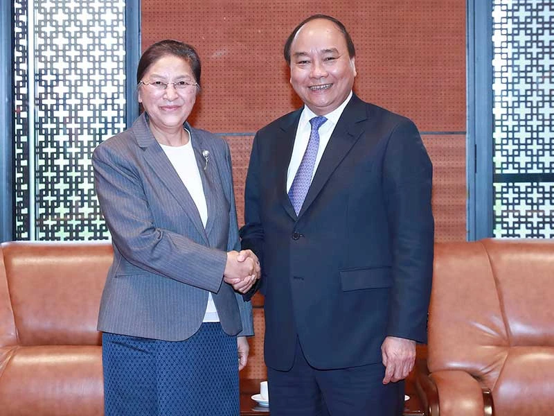 Thủ tướng Nguyễn Xuân Phúc và Chủ tịch Quốc hội Lào Pany Yathotu. Ảnh: QUANG HIẾU
