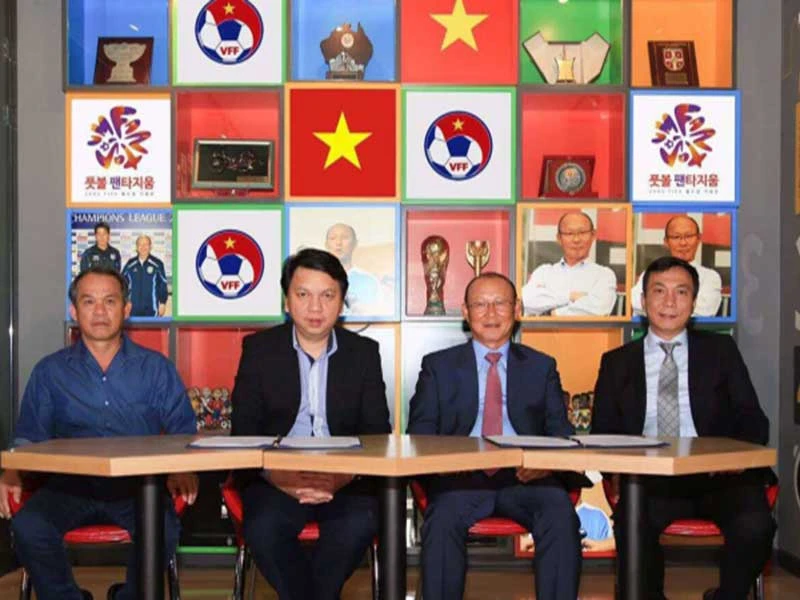 Lãnh đạo VFF đàm phán thành công và HLV Park Hang-seo sẽ dẫn dắt đội tuyển Việt Nam. Ảnh: VFF