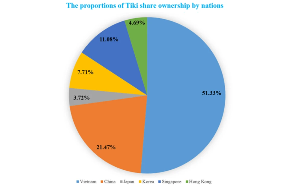 Cụ thể, Tiki đưa ra bảng phần trăm cổ phần tính theo quốc gia, cụ thể số vốn nội đang chiếm 51,33% cổ phần, nhà đầu tư Trung Quốc chiếm 21,47% cổ phần. Ngoài ra, cổ đông đến từ các nước Nhật Bản, Hàn Quốc, Singapore và Hong Kong lần lượt sở hữu 3,72%, 7,71%, 11,08% và 4,69% cổ phần tại Tiki.