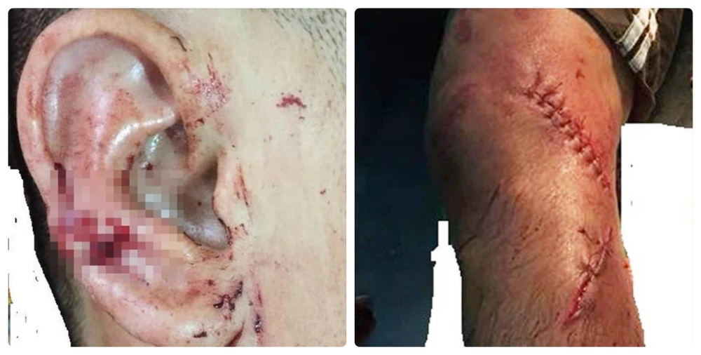 Vết thương ở vành tai và chân người đàn ông. Ảnh: BS