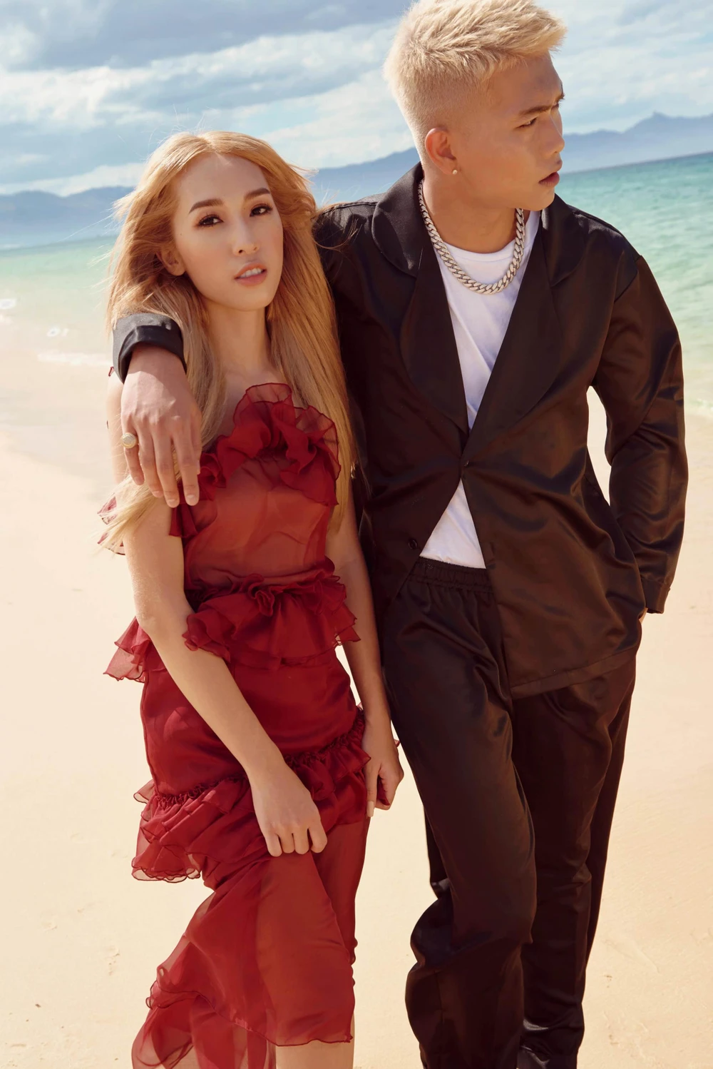Với bối cảnh chính là bãi biển, BigDaddy - Emily diễn xuất tình tứ như một đôi tình nhân đang trong kỳ nghỉ lãng mạn. Đặc biệt, dù là "bà mẹ hai con" nhưng Emily vẫn giữ được thân hình thon gọn, tự tin diện váy bó sát đầy cuốn hút, trông không khác thời còn là thiếu nữ.
