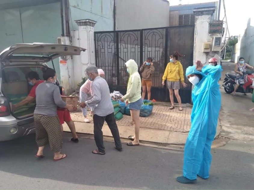 Không chỉ hỗ trợ bà con trong chung cư, chồng chị Anh còn tự mình chở rau củ đến các khu trọ nghèo, hỗ trợ bà con bị phong tỏa. Chi phí do gia đình, bạn bè và vợ chồng chị đóng góp.