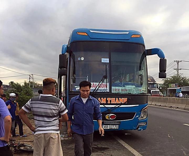 Cú tông làm hai vợ chồng văng xa khoảng 10m, xe máy nằm trước gầm xe khách, bị kéo lê một đoạn mới dừng lại. Tại hiện trường, người vợ nằm giữa đường, thi thể không nguyên vẹn, người chồng nằm trong lề đường. Lực lượng chức năng đã khám nghiệm hiện trường, điều tra nguyên nhân vụ tai nạn.