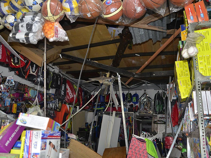 “Tôi đang nằm nghỉ cùng vợ trong cửa hàng thì nghe nhiều tiếng động, liền đó đồ đạc cùng trần nhà đổ đè trúng người” – anh Hùng kể.