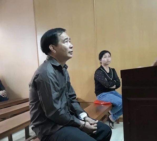 Hai vợ chồng Hòa và Hồng tại phòng xử. Ảnh: HOÀNG YẾN