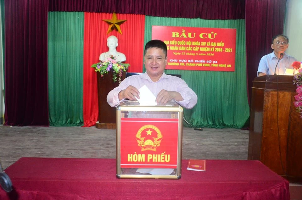 Sáng sớm nay (22-5), vợ chồng NSƯT Chí Trung - Ngọc Huyền đã đến điểm bầu cử số 4, phường Trường Thi (TP Vinh, Nghệ An) cùng ông Nguyễn Đắc Vinh - Bí Thư Tỉnh ủy Nghệ An và các đại biểu làm lễ khai mạc bầu cử.
