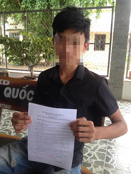 Em G. và đơn tố cáo. (Ảnh do gia đình cung cấp)