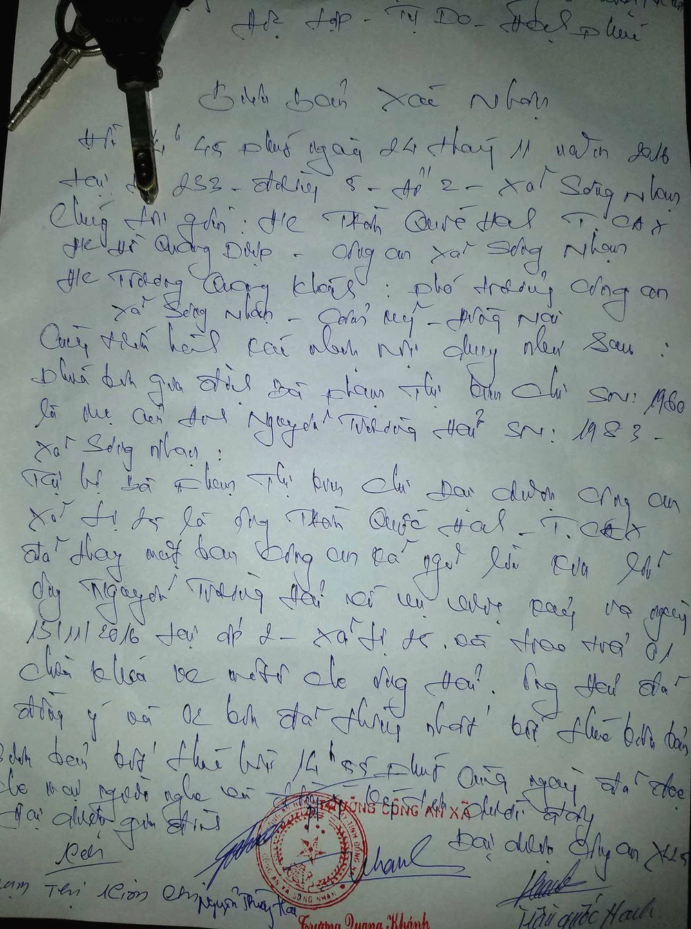 Buổi xin lỗi có sự chứng kiến của Công an xã Sông Nhạn (huyện Cẩm Mỹ) và được lập biên bản xác nhận.