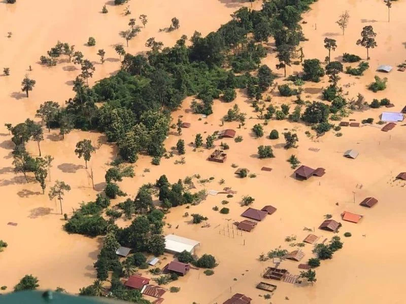 Sự cố vỡ đập thủy điện ở Lào làm ngập hàng trăm ngôi nhà. Ảnh: Internet
