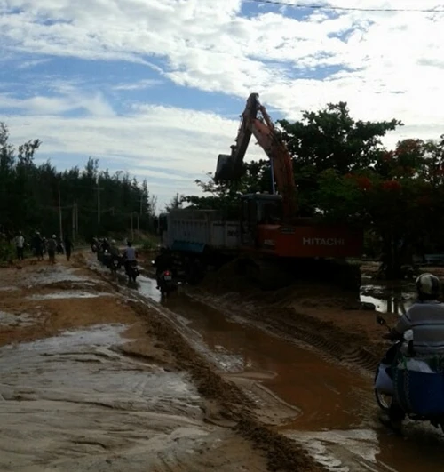 Sau sự cố, Công ty Tân Quang Cường đã điều xe ủi, xe ben đến dọn đường và khoảng 10 giờ sáng nay con lộ đã thông xe tạm thời.
