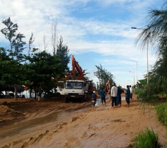 Chỉ trong khoảng thời gian ngắn, lượng cát khổng lồ đã ập xuống vùi lấp một đoạn đường dài non nửa cây số và dày đến 1 m. Theo bà Hiếu Nam, chủ một quán ăn ven biển, lượng cát khổng lồ đã ập xuống vùi lấp luôn quán ăn của bà, làm hư hỏng và cuốn trôi một số vật dụng ra biển. Lưu thông qua đoạn đường này gần như tê liệt.