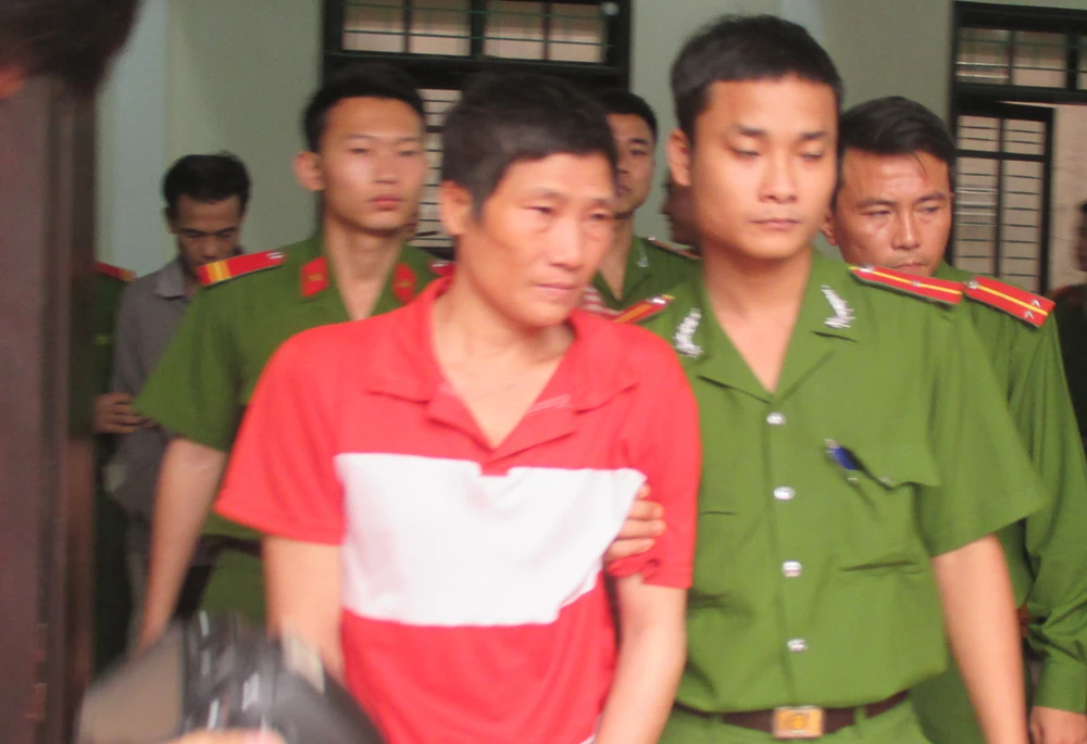 Cảnh sát dẫn giải bị cáo Giản Viết Tùng về Trại tạm giam Công an tỉnh Nghệ An.
