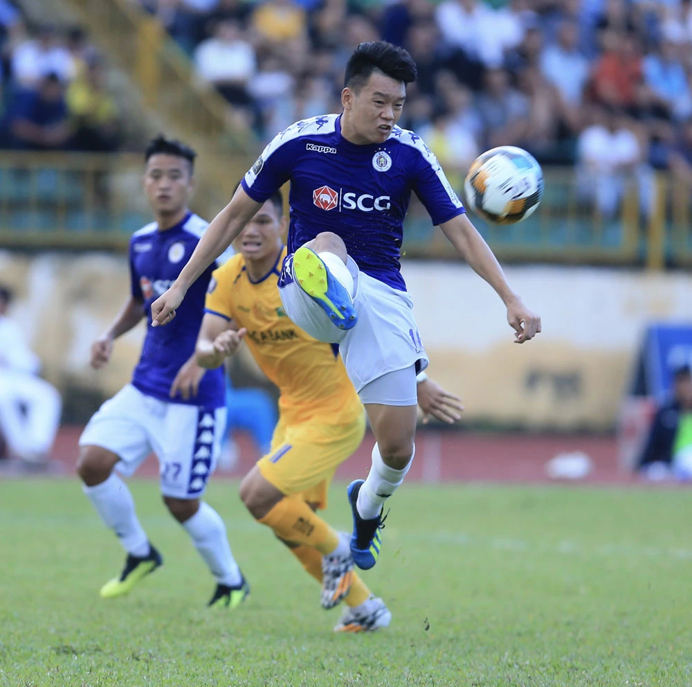 Tuyển thủ Thành Chung trong một pha khống chế bóng.