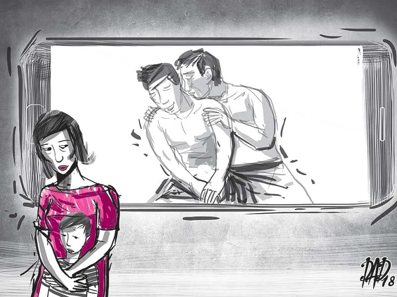 Cưới nhau hai năm, gia đình hai bên ngóng trông mãi mà chị vẫn chưa cấn bầu. Nghe lời mẹ chồng, anh chị đi khám thì bác sĩ bảo tinh trùng anh yếu. Chị về bốc thuốc cho chồng uống. Rồi niềm vui đã đến, chị có thai. Nhưng kể từ lúc chị có thai cho tới lúc cháu bé được bốn tuổi là bằng từng đó thời gian họ không chăn gối. “Anh là đàn ông nhưng bản tính không thích phụ nữ. Cả xóm ai cũng biết” - chị kể.