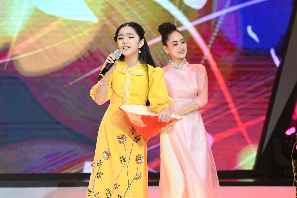 Nữ giám khảo Quỳnh Hoa đặc biệt tâm đắc nụ cười duyên dáng của em, chị cũng hướng dẫn cô bé cách luyến láy cho mềm mại hơn khi hát dân ca Bắc bộ.