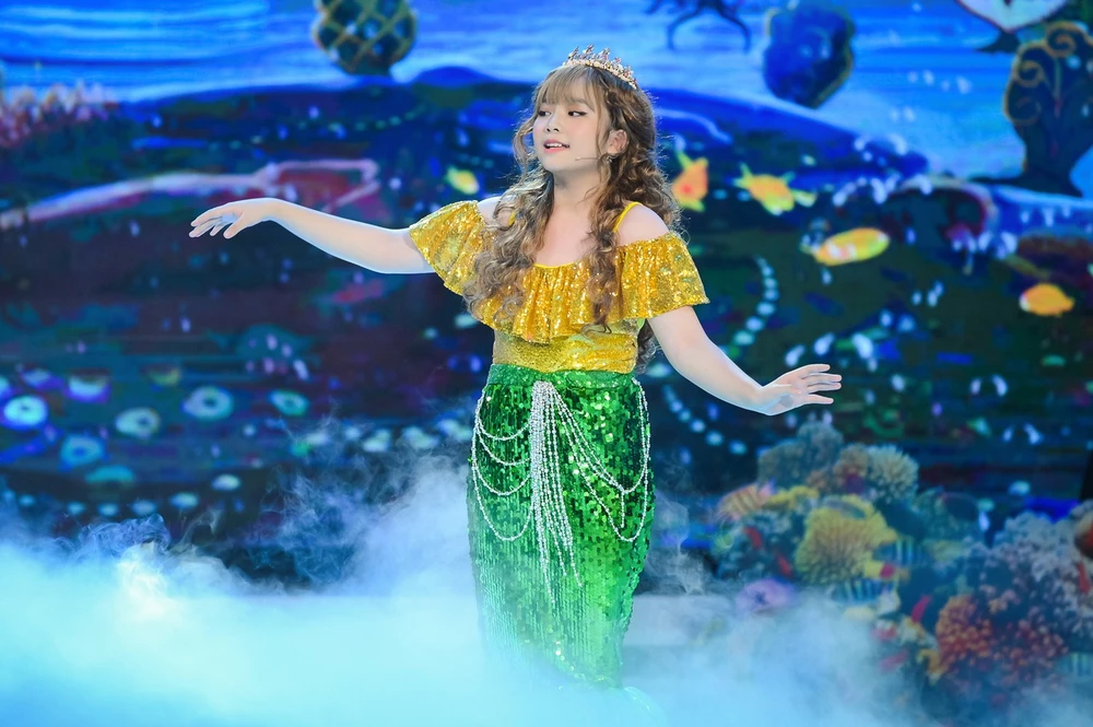 Cô bé Hà Mi là giọng hát nhí đầu tiên thử thách trong đêm thi cùng với màn hoá thân thành nàng tiên cá. Em mang đến một sân khấu lộng lẫy nơi thuỷ cung cùng liên khúc Ru em bằng tiếng sóng và Sóng tình.