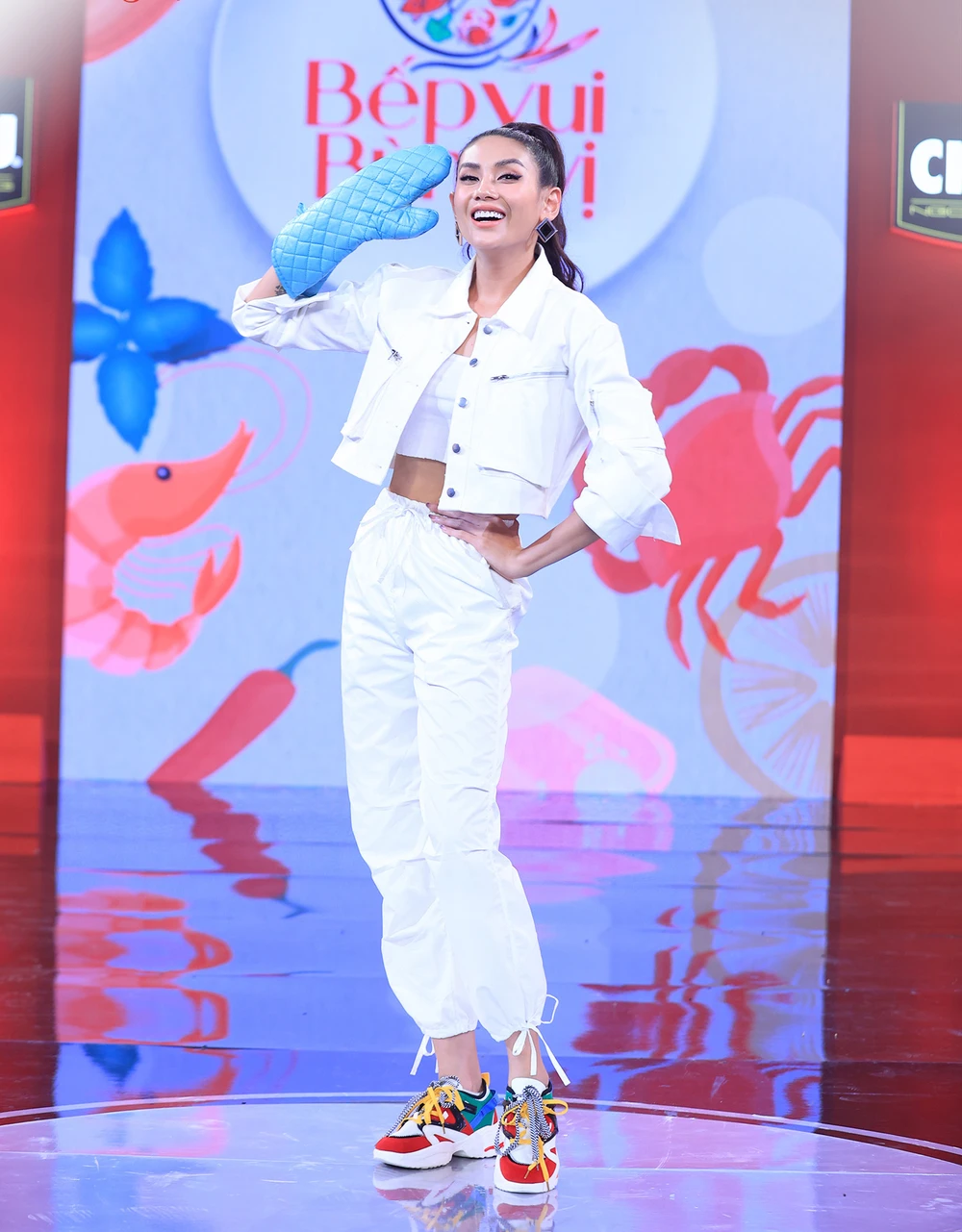 Võ Hoàng Yến với sự đa năng và tài catwalk thần sầu, cô được MC Trường Giang mời catwalk thử trên vòng xoay thần thánh của chương trình.