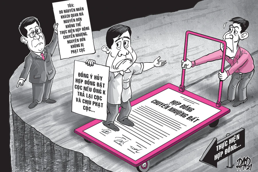 Xử phúc thẩm mới đây, TAND tỉnh Phú Yên nhận định: Do nguyên nhân khách quan mà vợ chồng ông B không thể thực hiện hợp đồng chuyển nhượng đất đúng hạn theo thỏa thuận của hợp đồng đặt cọc, chứ không phải họ từ chối giao kết và thực hiện hợp đồng chuyển nhượng đất.
