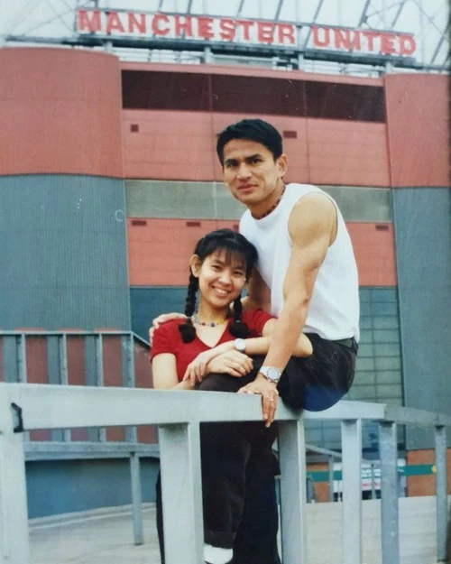 Thời họ quen nhau chụp hình lưu niệm trước sân Old Trafford. Ảnh: S.S