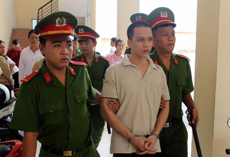 Bị cáo Võ Hồng Huynh đang được áp giải ra xe.