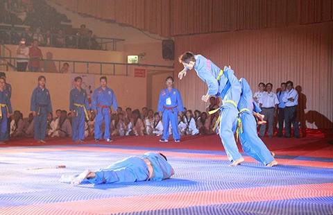 Vovinam - “Quốc võ” của Việt Nam đã có một ngày tỏa sáng khi thể hiện được tất cả kỹ thuật bậc nhất của môn phái. Những chiêu thức đấm, đá nhảy, các thế kẹp chân, khóa cổ được thực hiện cực kỳ điêu luyện dù diễn ra ở tốc độ cao.