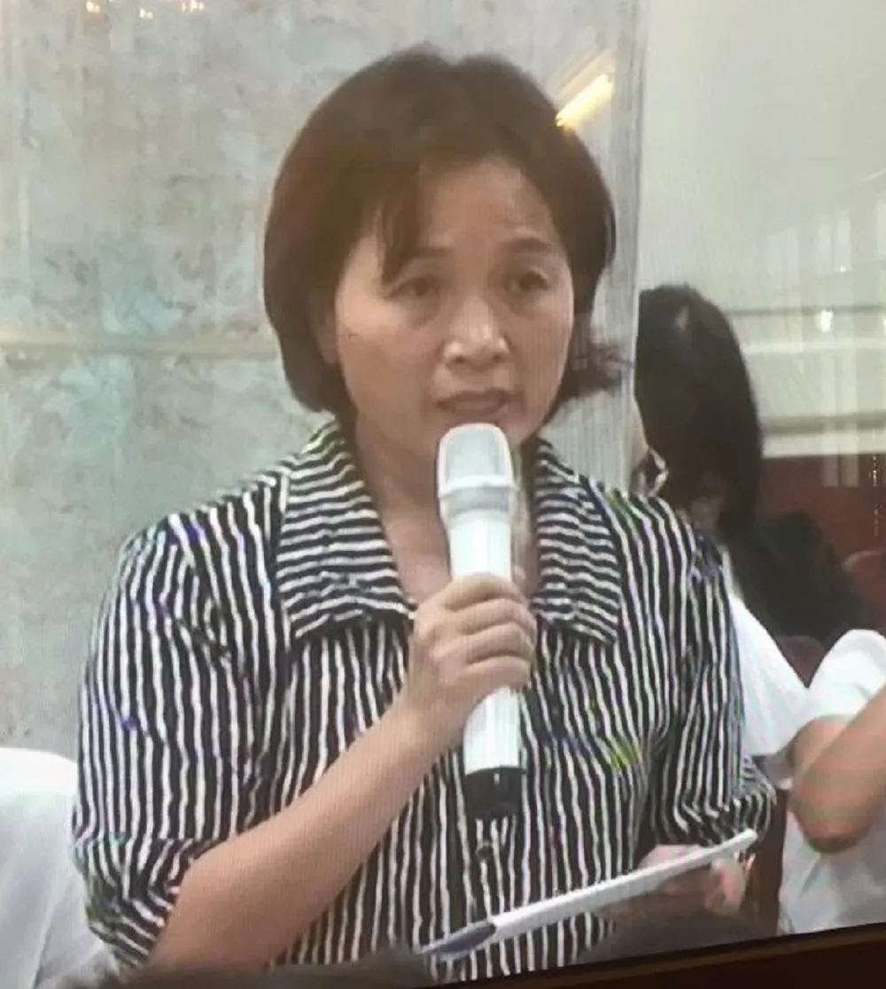 Bà Võ Thị Thanh Xuân, vợ bị cáo Nguyễn Xuân Sơn, trình bày tại tòa.