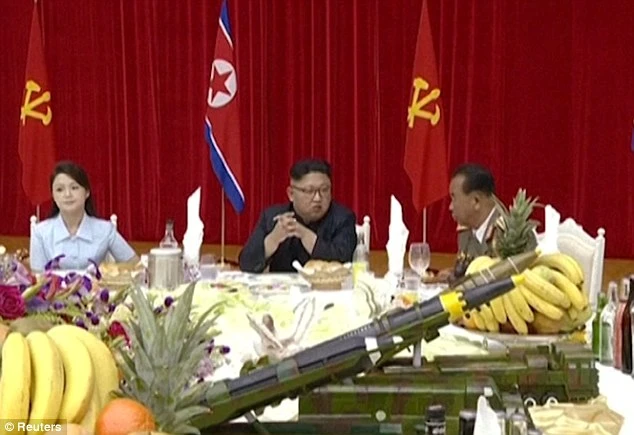 Bà Ri Sol Ju, vợ ông Kim Jong-un, xuất hiện trong bữa tiệc. Ảnh: REUTERS