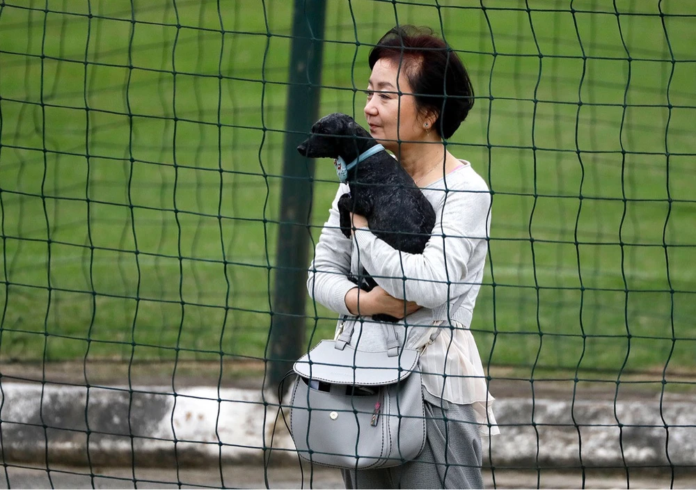 Vợ ông Park Hang-seo say sưa xem buổi tập của chồng với các học trò U-23 Việt Nam trong ngày đầu tập trung. Ảnh: NGỌC DUNG
