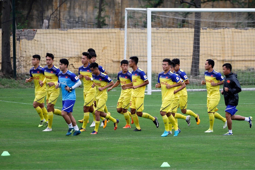 Đội tuyển U-23 Việt Nam khởi động nhẹ nhàng để làm quen với không khí mới mà nhiều cầu thủ trẻ còn bỡ ngỡ.