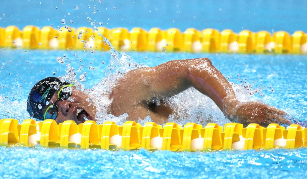 Kình ngư Võ Thanh Tùng đoạt HCV, phá kỷ lục 100 m tự do châu Á. ẢNH: CMQ