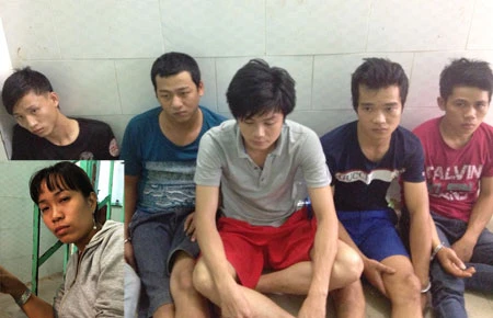 Trần Thụy Minh Thủy và năm nghi can đánh người, cướp tài sản, cùng tang vật. Ảnh: HT